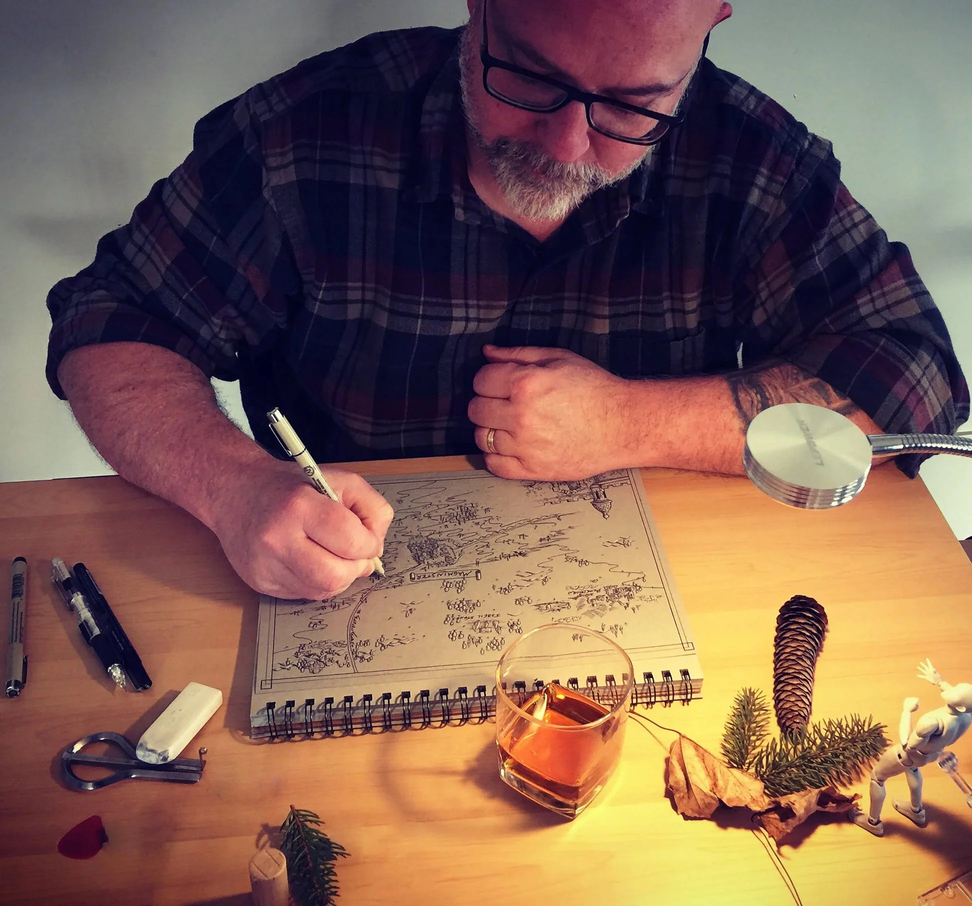 I am a fantasy cartographer and illustrator specializing in hand-drawn maps that blend fine-art sensibilities with narrative worldbuilding. For more than four decades, I have explored the craft of visual storytelling—creating maps and illustrations that do more than describe a place; they evoke the tone, history, and hidden life of the worlds they depict.